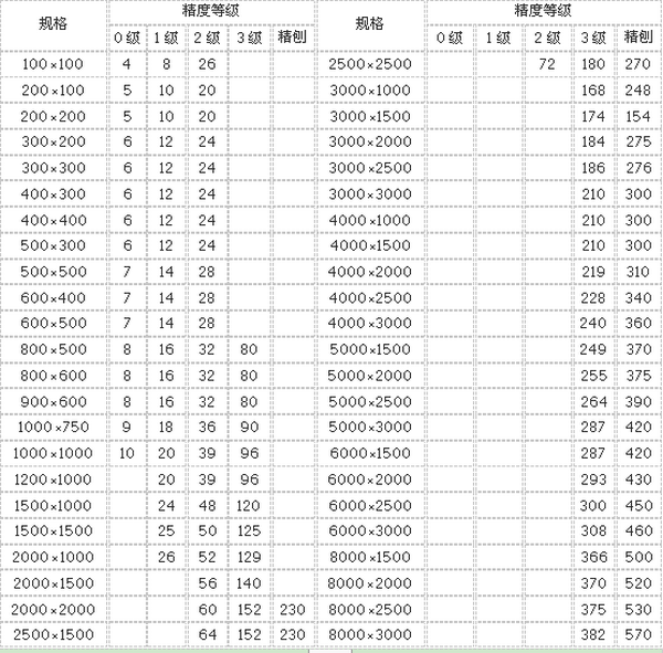 劃線平板精度:按**標(biāo)準(zhǔn)計(jì)量檢定規(guī)程執(zhí)行,分別為0、1、2、3四個(gè)等級(jí)。
