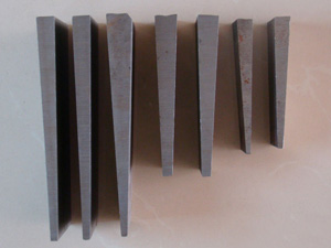 斜墊鐵按種類可分:鑄鐵斜墊鐵,鋼制斜墊鐵,防暴斜墊鐵三種。其中鑄鐵斜墊鐵材質(zhì)為HT250,鋼制斜墊鐵是Q235低碳鋼鍛造或機(jī)械技工而成。防爆斜墊鐵材質(zhì)為鈹青銅。