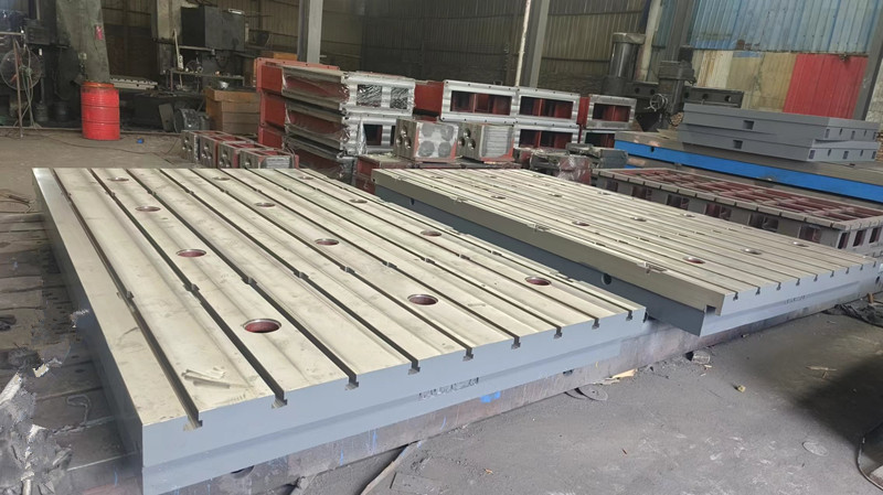 鑄鐵平臺結構:制成筋板式和箱體式,工作面有長方形、正方形或圓形。工作面采用刮削工藝,工作面上可加工V形、T形、U形槽和圓孔、長孔等。